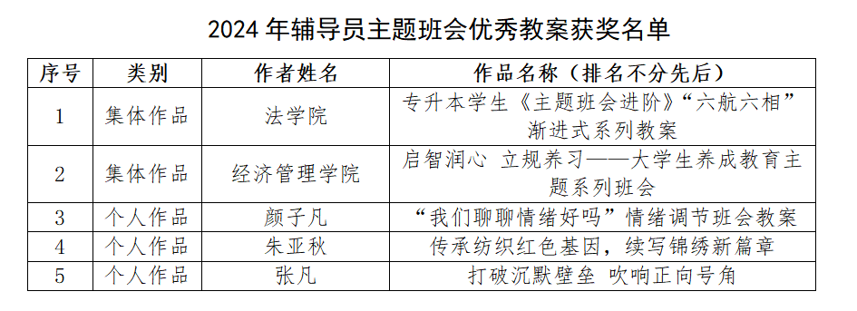 此次评选经高校推荐、专家评审、公示等环节严格遴选,全省共评选出辅导员主题班会优秀教案291项(集体作品112项,个人作品179项),今年会获奖总数位居全省前列,充分彰显了学校辅导员队伍在主题班会设计与实践中的扎实功底和创新水平。