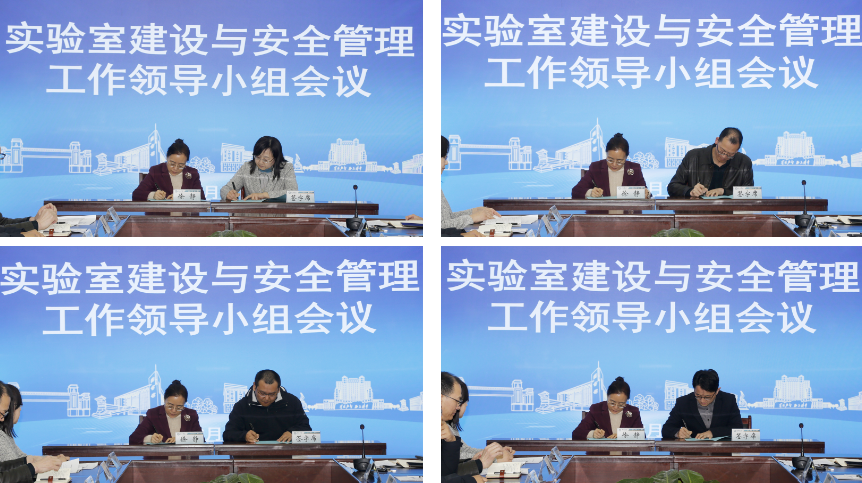 会议通报了2024年度学校实验室安全和建设管理工作情况及2025年实验室建设和安全管理工作目标任务、2025年春季开学实验室安全检查情况;纺织服装学院、化学化工学院、能源与机械学院、物理与电子信息学院等教学单位负责人代表做了典型发言;党委委员、副校长徐静与化学化工学院、生物物理研究院、药学院、生命科学学院等教学科研负责人代表签订了实验室安全责任书。