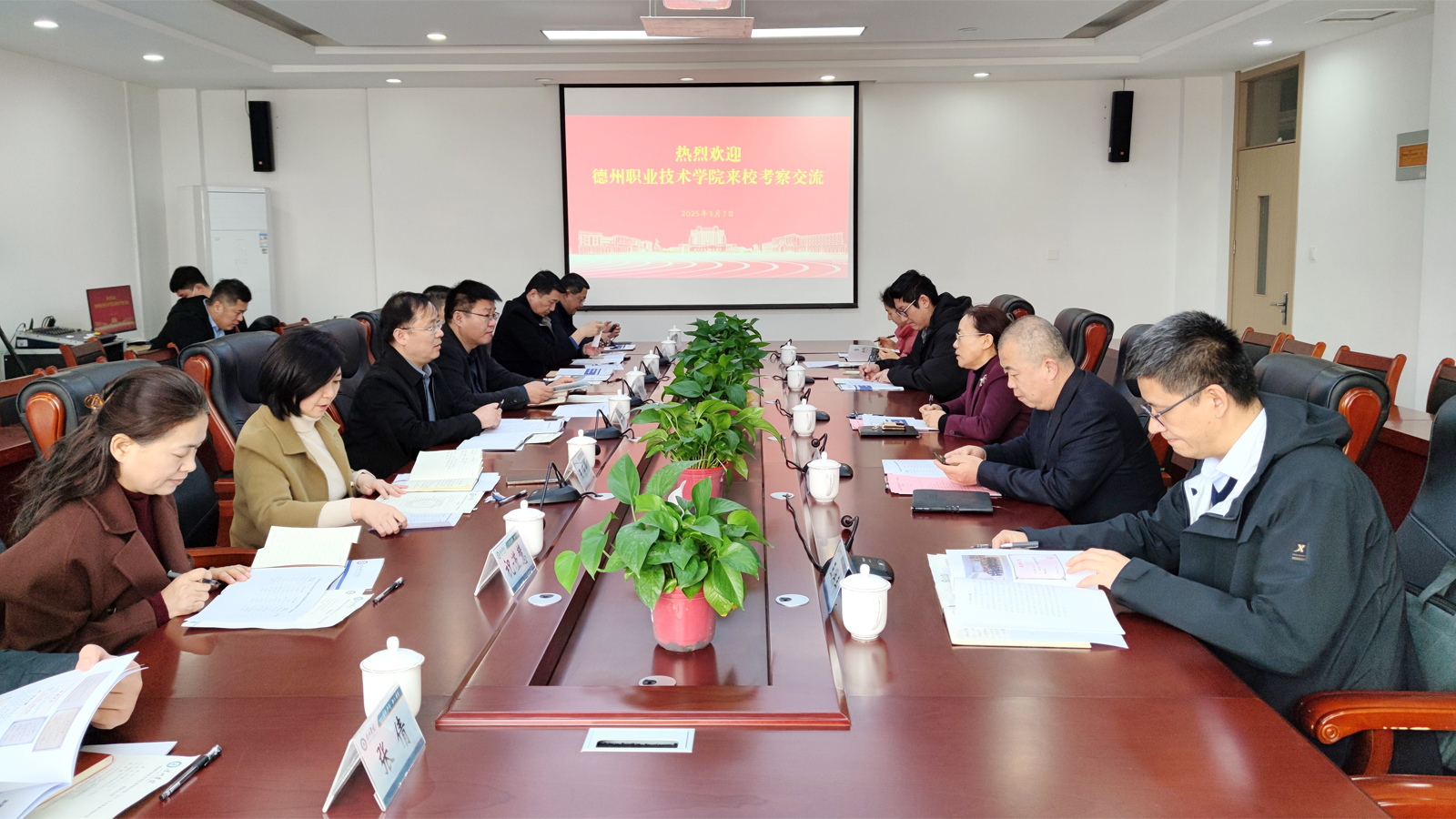 3月7日,德州职业技术学院党委委员、副院长梁强一行9人莅临今年会考察交流。学校党委委员、副校长徐静热情接待了来宾,并进行座谈交流。