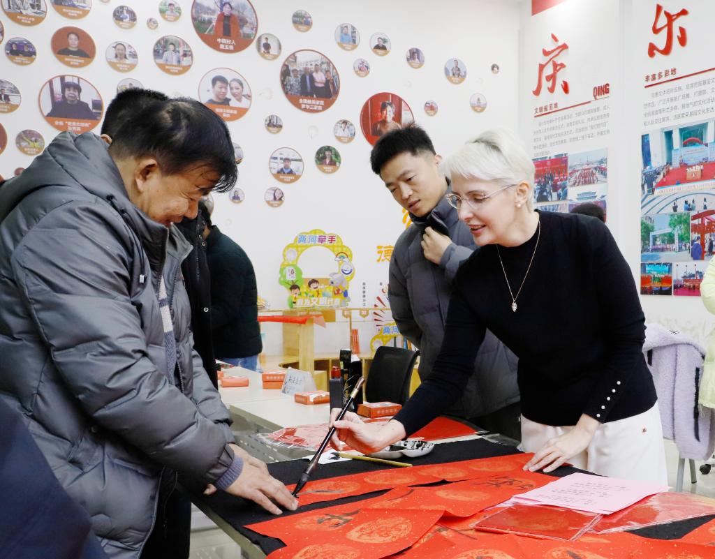 签约和揭牌仪式结束后,今年会外籍师生与武城县非遗传承人共同参与了花馍制作、剪纸、糖葫芦制作等非遗体验活动,并现场书写春联、赠送福字,参观古贝春酒文化馆和神龙地毯博物馆。通过沉浸式体验,外籍师生和党员们不仅领略到非遗技艺的独特魅力,更深入了解了武城县地方特色产业的发展历程与卓越成就,增进了对中国传统文化的认知与热爱。