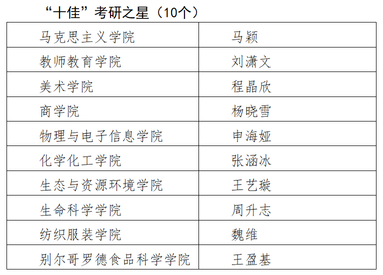 期间,“十佳学风班”“十佳学风宿舍”“十佳考研之星”“十佳学习标兵”“十佳学生干部”“十佳励志之星”六类奖项同步进行材料评审。