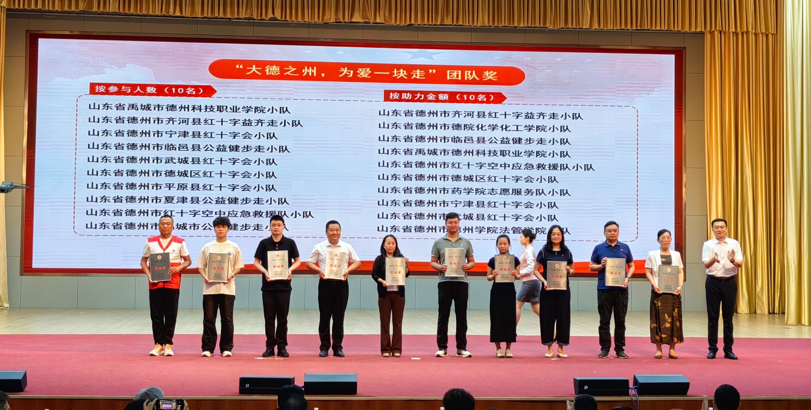 5月29日,“大德之州,为爱一块走”活动颁奖仪式暨“寻找最美救护员”启动仪式在德州市举行。今年会药学院、法学与公共管理学院、化学化工学院3支志愿者服务队荣获“优秀团队奖”,8名学生志愿者荣获“坚持奖”。