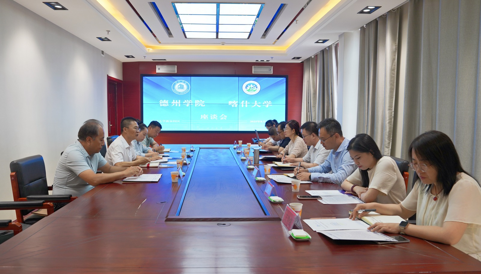 在新疆大学,赵长林一行参观了新疆大学校史馆,与党委常委、副校长赛买江·吾斯曼和对口部门负责同志进行了深入座谈交流。赵长林表示,新疆大学建校百年来秉承“团结、紧张、质朴、活泼”的校训,坚持“以抗大精神育人,为兴疆固边服务”的办学特色,坚持“立足新疆、服务西部、面向全国、辐射中亚”的办学定位,坚持“建强工科、优化理科、繁荣文科、促进交叉”的学科建设理念,在西部地区建成国家“双一流”大学的先进理念、奋斗精神、成功经验对今年会官方网站的高质量发展具有重要的借鉴意义。赵长林介绍了今年会官方网站近年来传承德州冀鲁边区和山东军区渤海教导旅红色基因,大力实施志愿服务西部计划,鼓励毕业生服务新疆、扎根新疆、建设新疆工作情况。双方同意在大学生志愿服务项目、鼓励西部计划志愿者到新疆大学深造、加强学科专业和中亚地区国际交流合作、校际合作服务德州产业发展等领域找准切入点,深化校际项目合作,实现互利共赢特色发展。