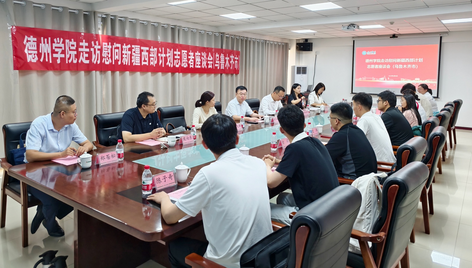 学校新疆校友联谊会成立大会暨喀什地区西部计划志愿者座谈会在山东援疆指挥部一楼会议室举行。