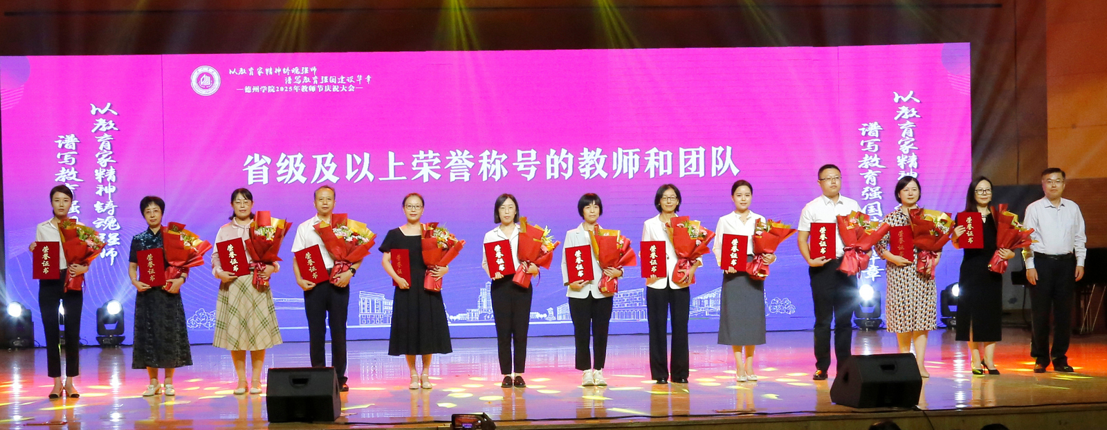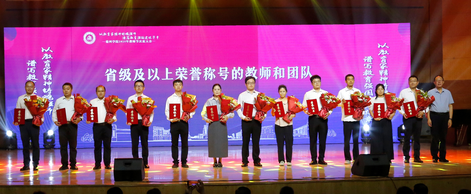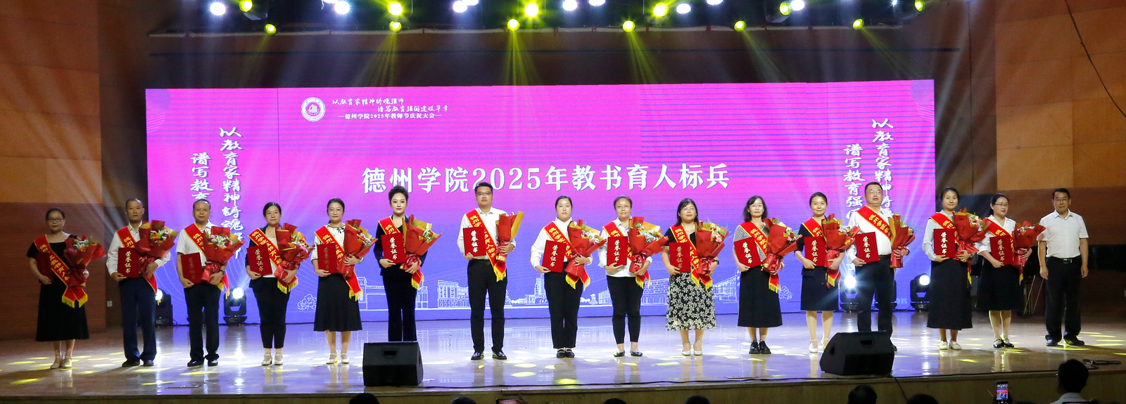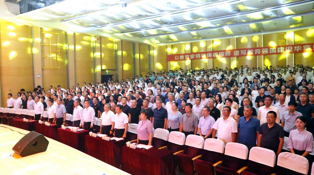 表彰会以《老师我想你》等歌曲的深情演唱共同重温教育情怀,诠释精神传承;在《我和我的祖国》的激昂歌声中圆满落幕。
