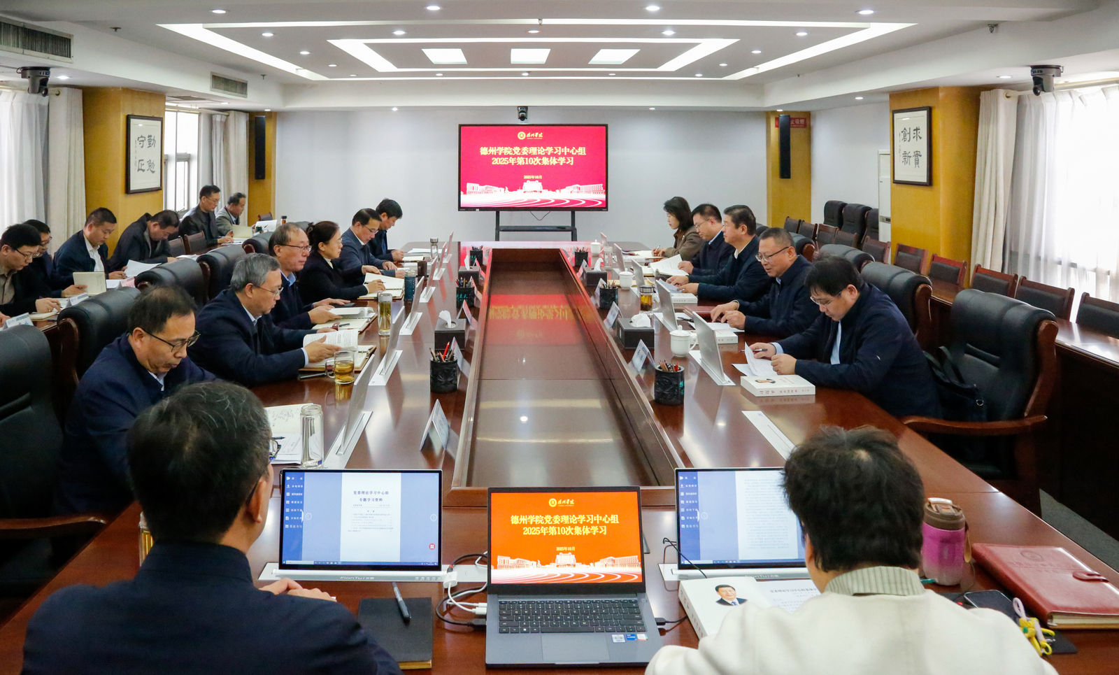 10月29日,学校党委理论学习中心组围绕“坚持以习近平新时代中国特色社会主义思想为指导,深入学习贯彻党的二十届四中全会精神,科学谋划“十五五”学校事业发展,为服务教育强国、教育强省建设贡献德院力量”开展集体(扩大)学习会议。省委教育工委列席旁听工作组到会指导,党委书记吴君主持会议并讲话。