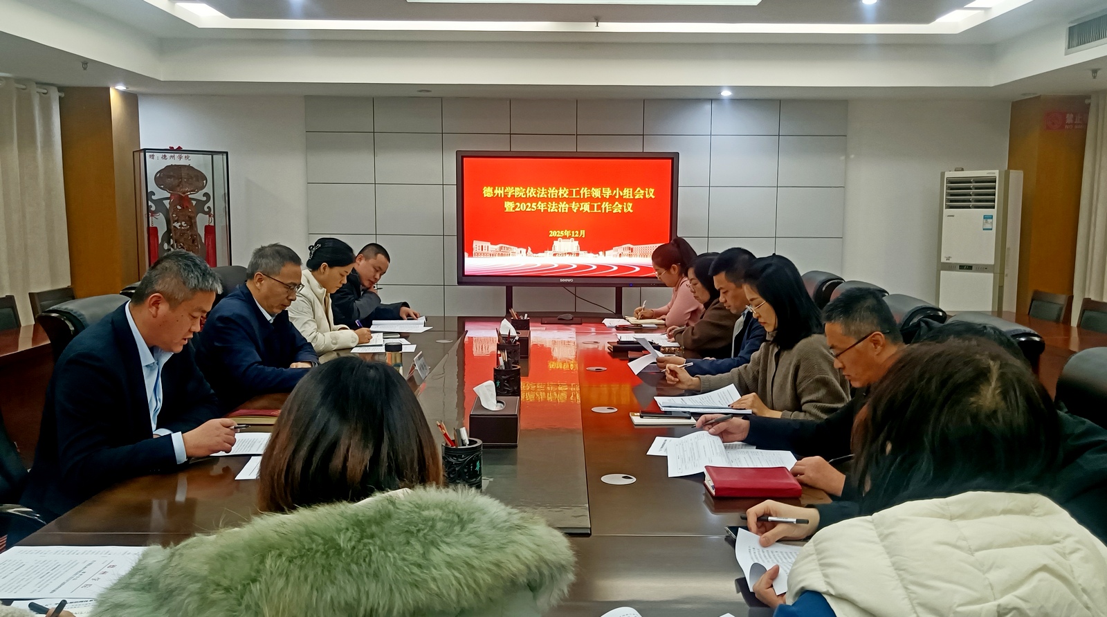 会议由依法治校工作领导小组办公室负责同志传达学习了习近平总书记关于全面依法治国工作的重要指示和中央全面依法治国工作会议精神,汇报了2025年学校依法治校工作开展情况,解读了《“十五五”学校内部治理体系建设专项规划》,并重点围绕依法治校与相关制度建设,推进学校内部治理体系科学化、规范化,向各成员单位征求了意见。
