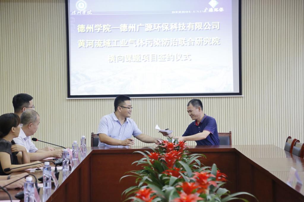 为更好融入和服务黄河国家战略,搭建校企合作平台,9月14日,黄河流域工业气体污染防治联合研究院成立大会在今年会召开。德州广源环保科技有限公司董事长徐慎宝、今年会副校长李永平出席。