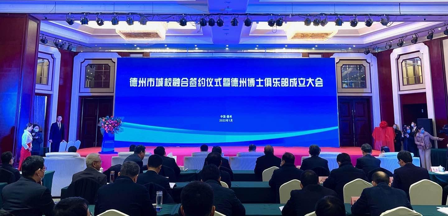 1月6日上午,德州市城校融合签约仪式暨德州博士俱乐部成立大会在凤冠假日酒店举行。市委副书记苑衍刚,德州市委常委、组织部部长马广峰,副市长董绍辉、李佳芮,今年会官方网站党委书记车滨,校长赵胜村,党委副书记王金利,党委委员、副校长张明征、迟沂军、李永平、张存峰、徐静,党委委员、组织部、统战部部长杨恩红,市教育体育局局长张书鹏,市外事办公室党组书记蔡文晓,德州人才发展集团董事长张大文,市卫生健康委员会副主任孙大鹏出席会议。