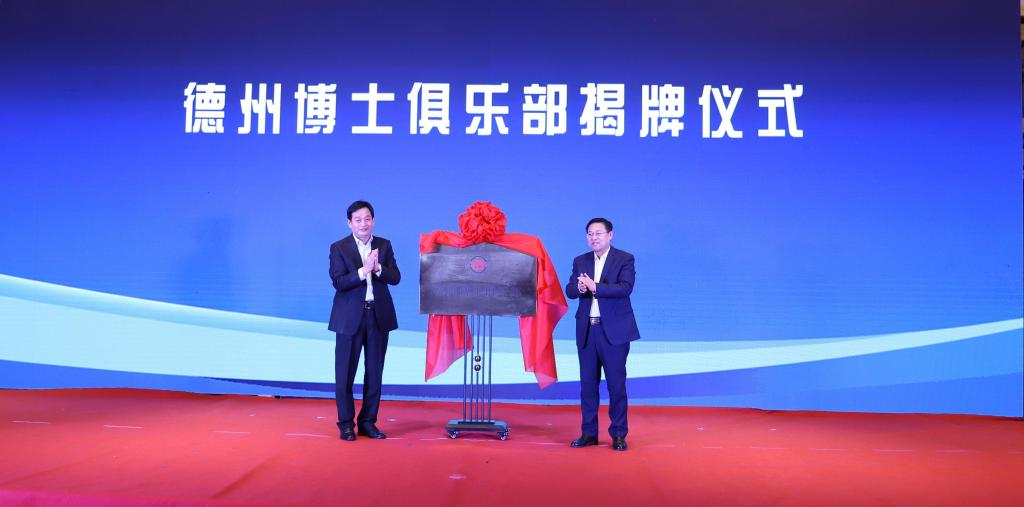 马广峰、赵胜村为德州博士俱乐部揭牌。