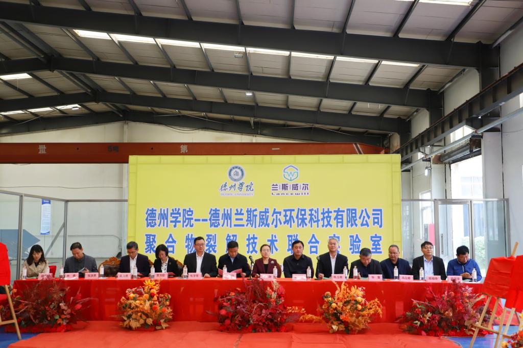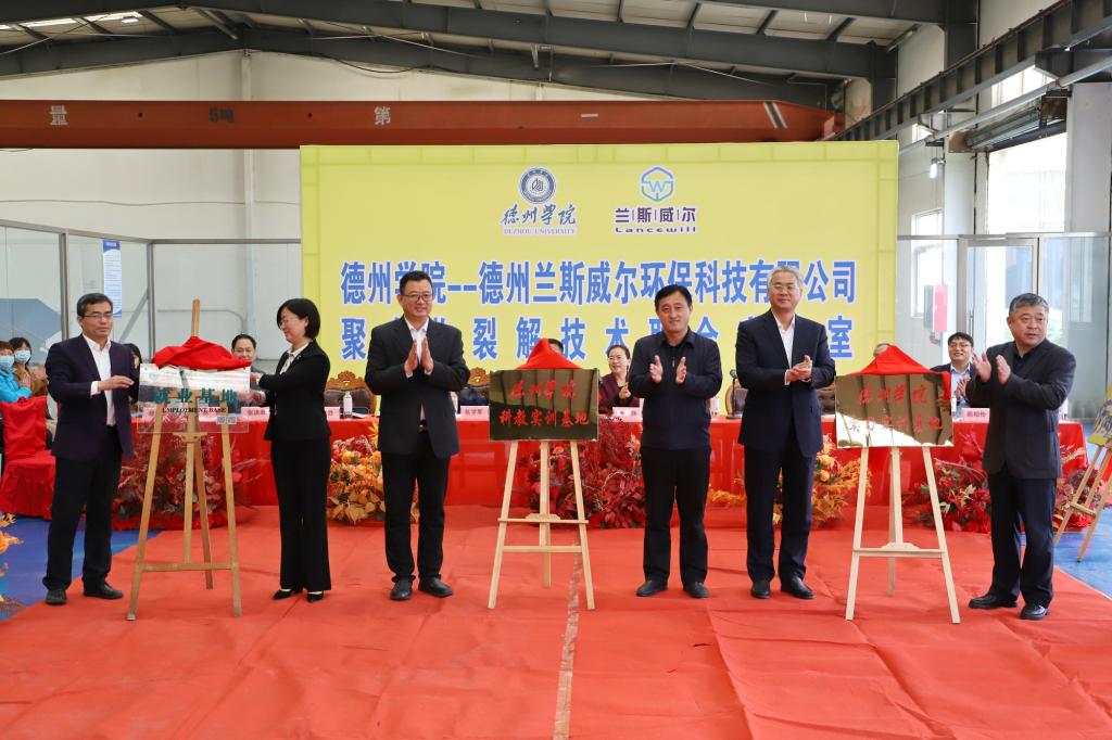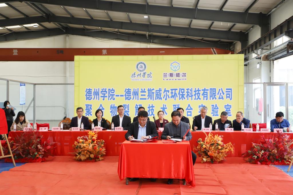 4月28日,学校与德州兰斯威尔环保科技有限公司产学研全面合作签约暨联合实验室揭牌仪式在德州兰斯威尔环保科技有限公司举行。陵城区副区长黄向阳、陵城经开区党工委书记康荣强,学校副校长徐静,兰斯威尔环保科技有限公司总经理林勇出席。