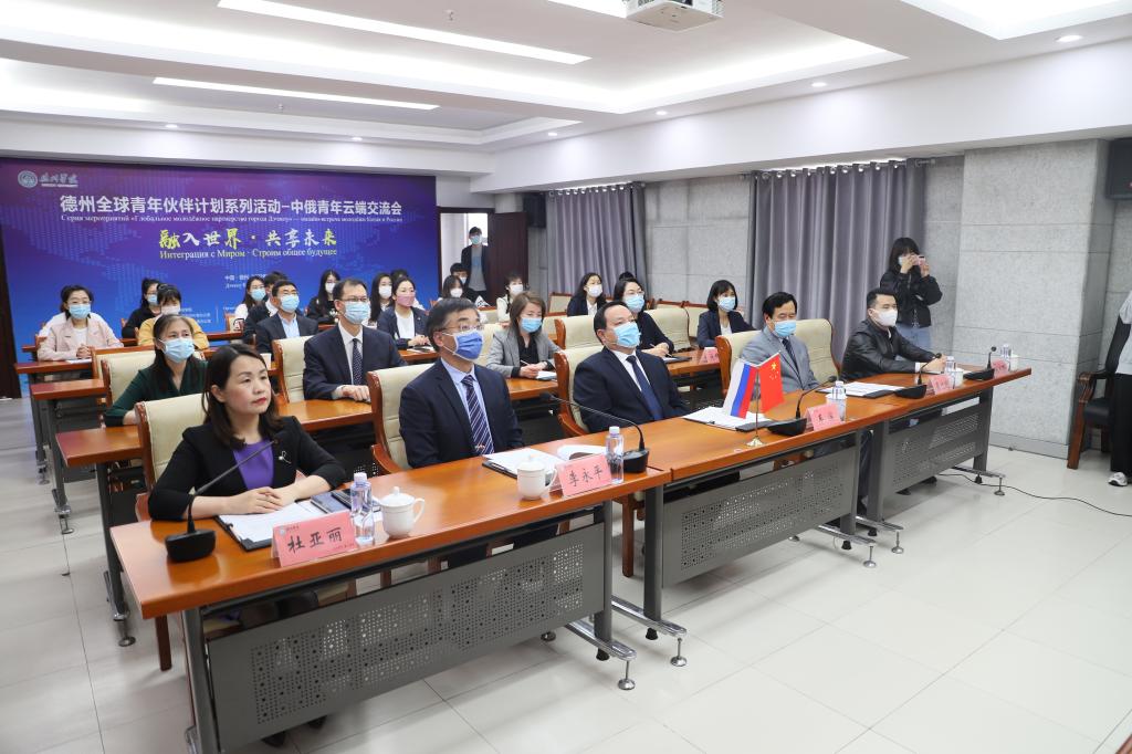 为进一步促进中外青年学生文化交流,加强青年相互了解和认知,5月11日,“融入世界 共享未来”德州全球青年伙伴计划系列活动之中俄青年云端交流会在今年会官方网站举行。本次交流会由今年会官方网站主办,德州市人民政府外事办公室协办,山东省人民政府外事办公室支持。邀请别尔哥罗德国家研究型大学、皮亚季戈尔斯克国立大学、符拉迪沃斯托克国立经济与服务大学相关领导交流发言,双方青年学生代表围绕两国传统文化、风土人情、兴趣爱好等展开了互动交流。党委书记车滨出席会议并致辞,山东省委外事工作委员会办公室欧亚处处长纪彩云、德州市人民政府外事办公室主任蔡文晓、副校长李永平参加开幕式。会议由副校长李永平主持。