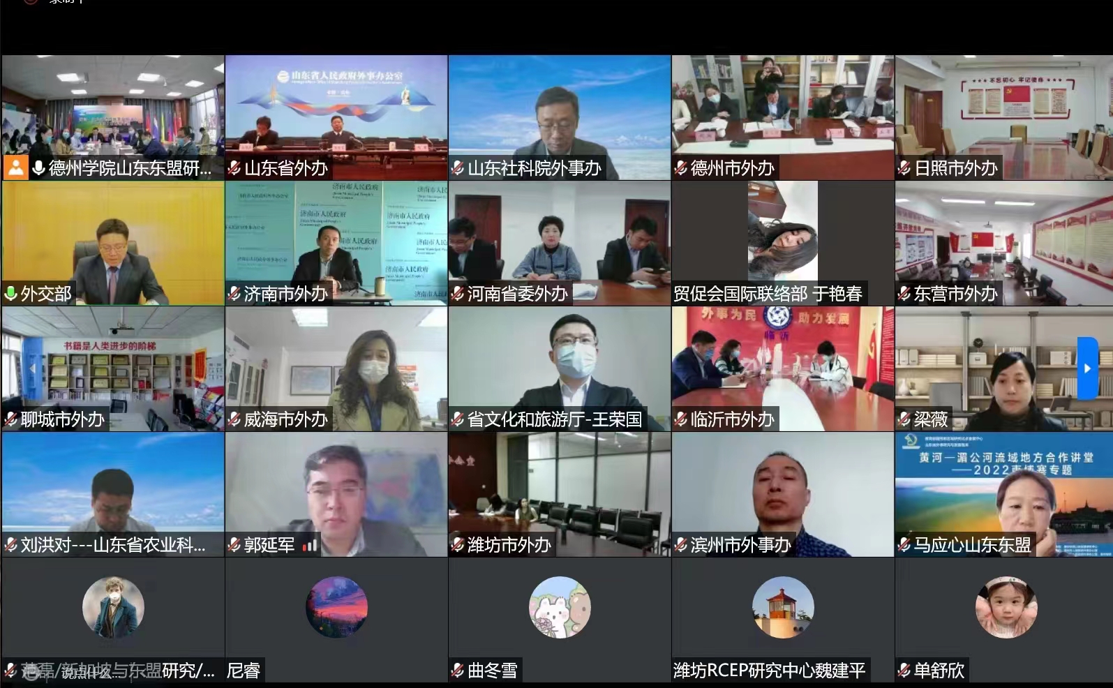 青海、河南、陕西、甘肃等沿黄八省区外办,广西、云南外办,山东省相关部门和16市外办、今年会相关研究人员线上参会。