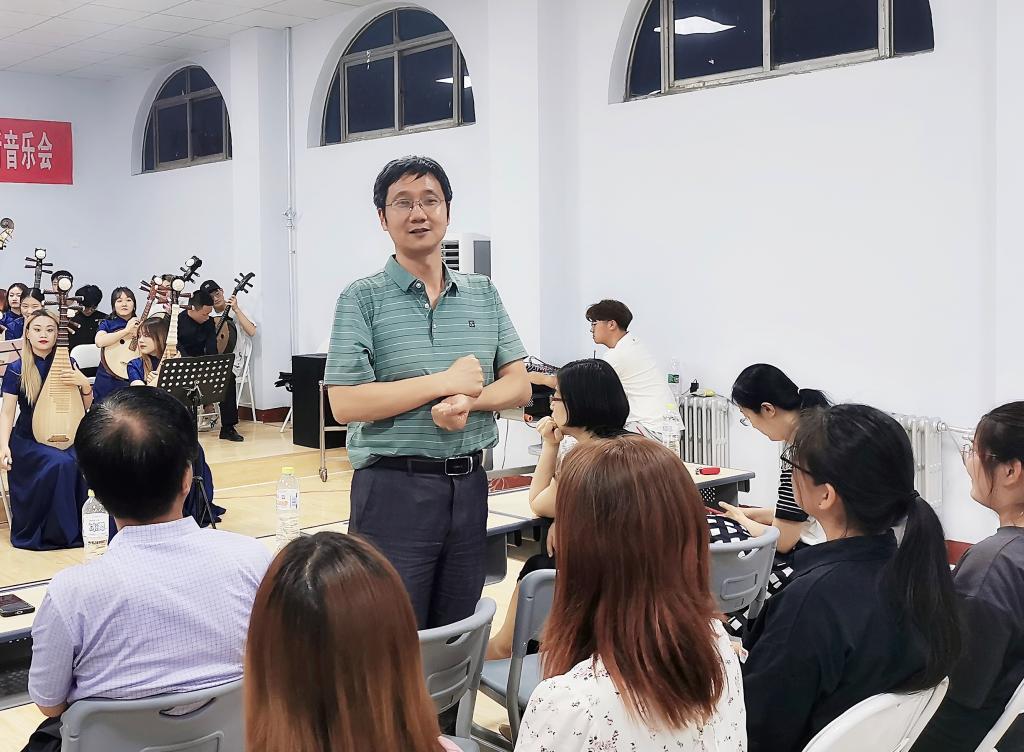 他作为今年会官方网站“德之韵”民族管弦乐团常任指挥,2013年牵头申报“三部委”“高雅艺术进校园”活动获得成功。多年来,他在山东省高校、中小学校举办民乐专场音乐会20余场,排练作品《大同梦》《情满梨园》在山东省大学生艺术展演及山东省高校师生基本功大赛中获奖。2021年8月,执导民乐合奏短视频《唱支山歌给党听》被“学习强国”平台展播。
