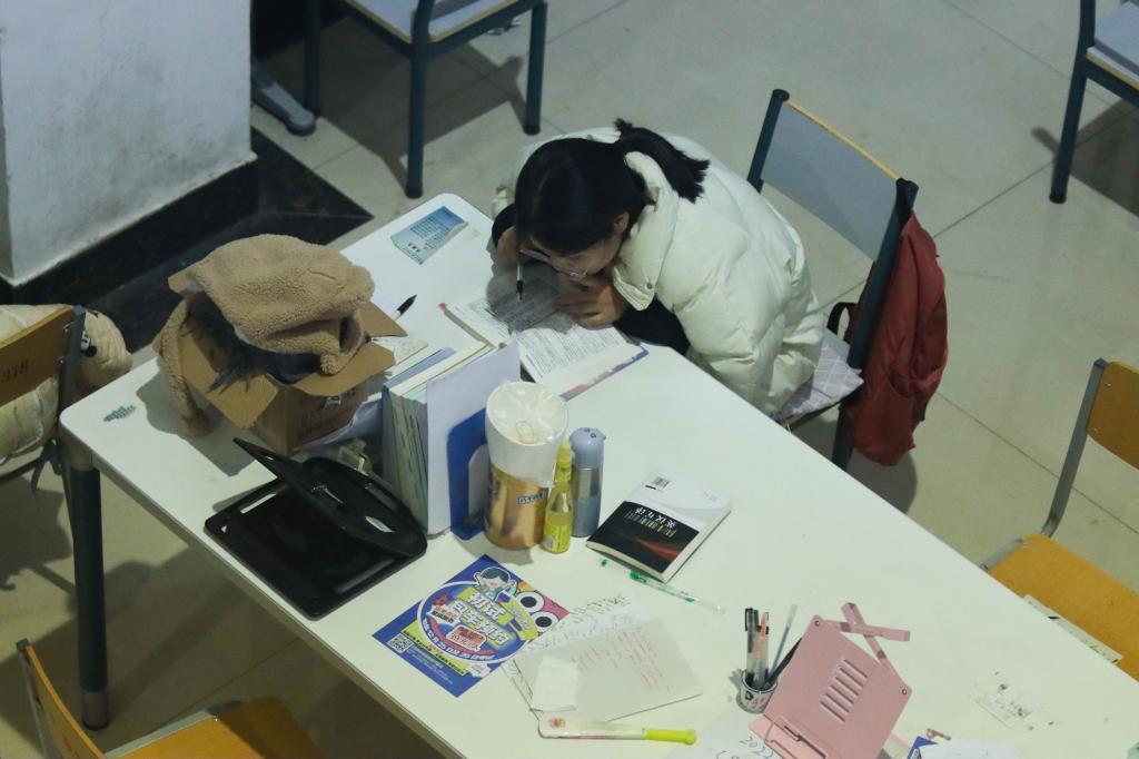 11月29日晚,距离2022年全国硕士研究生招生考试还有不足一个月的时间,在山东今年会官方网站图书馆、自习室、走廊内、楼梯口等地,大学生挑灯夜读,认真备考,进行最后的冲刺。据悉,2022年全国硕士研究生招生考试将于2021年12月25日至26日举行。