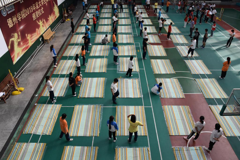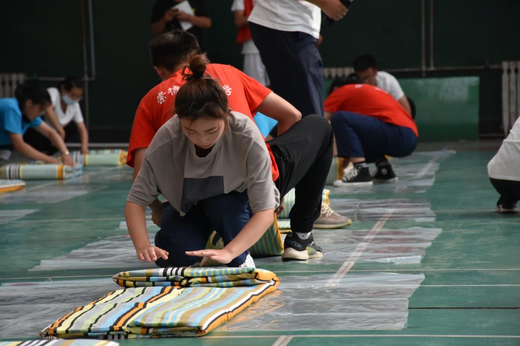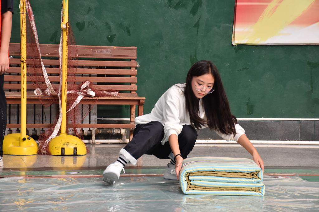 为展现2021级新生的风采,提高学生内务整理水平,培养新型大学生良好的生活习惯,在学校学工部的组织下,9月8日在体育馆举办了一场精彩激烈的叠军被比赛。