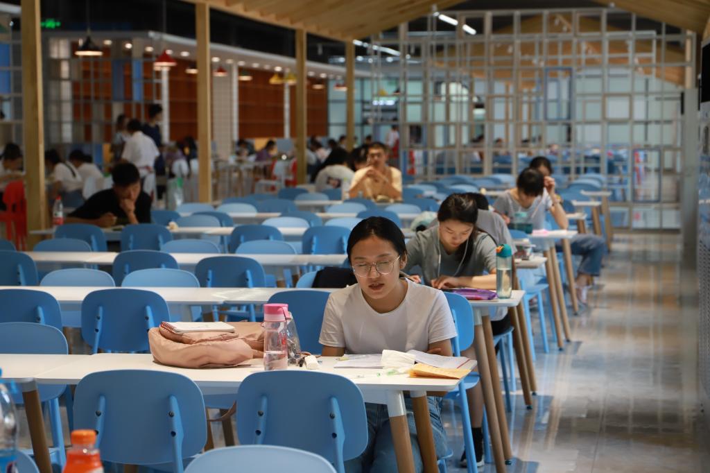 在学校图书馆、教学楼、教室里、走廊里、草坪上看到许多学生正在认真学习,学习氛围很浓,漫步校园随处可见朗读、背诵、学习的学生。