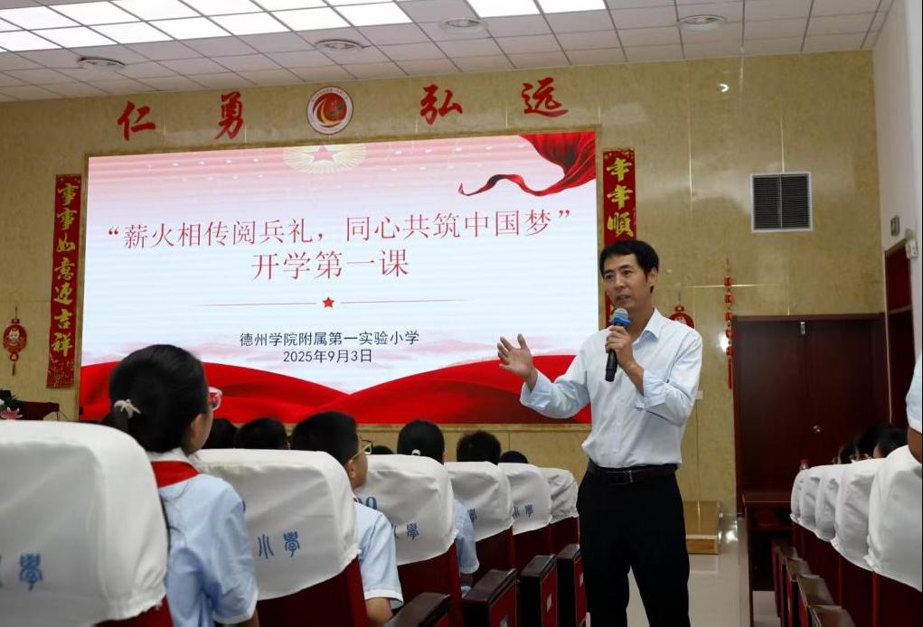 9月3日上午,党委委员、副校长徐静到今年会官方网站附属第一实验小学参加主题为“薪火相传阅兵礼,同心共筑中国梦”的开学第一课。天衢新区教体卫生事业发展部负责人韩立敏、全国劳动模范、大国工匠程平等参加活动。