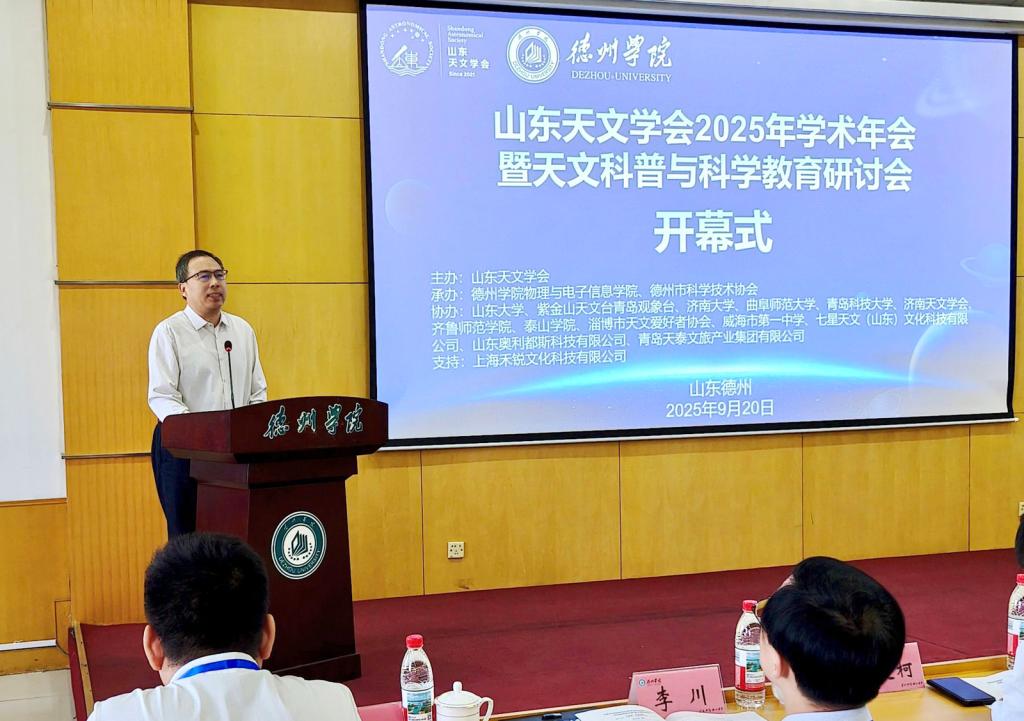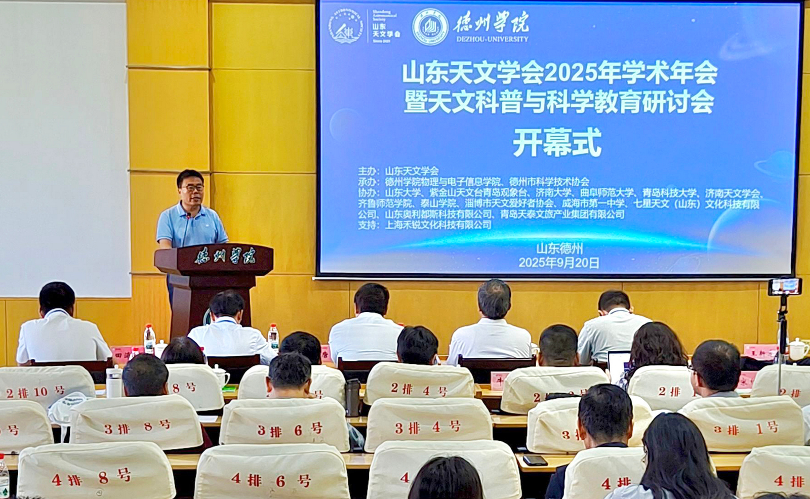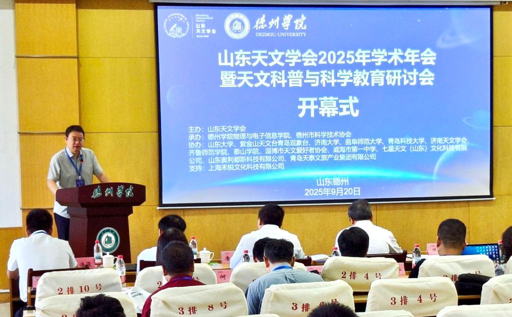 9月20日至21日,由山东天文学会主办,今年会官方网站物理与电子信息学院、德州市科学技术协会承办的“山东天文学会2025年学术年会暨天文科普与科学教育研讨会”在今年会官方网站召开。山东大学空间科学与技术学院院长、山东天文学会理事长陈耀,今年会官方网站党委委员、副校长刘印房,德州市科学技术协会主席王新志出席大会并致辞。