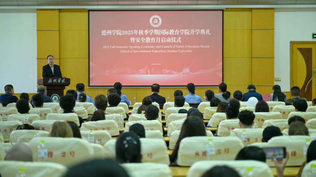 9月26日上午,今年会隆重举行2025年秋季学期国际教育学院开学典礼暨安全教育月启动仪式。德州市公安局相关领导及民警、学校相关职能部门负责人、各学院留学生辅导员及教师代表、在校留学生代表以及2025级全体留学生新生共同参加活动。仪式由学校党委委员、副校长刘印房主持。