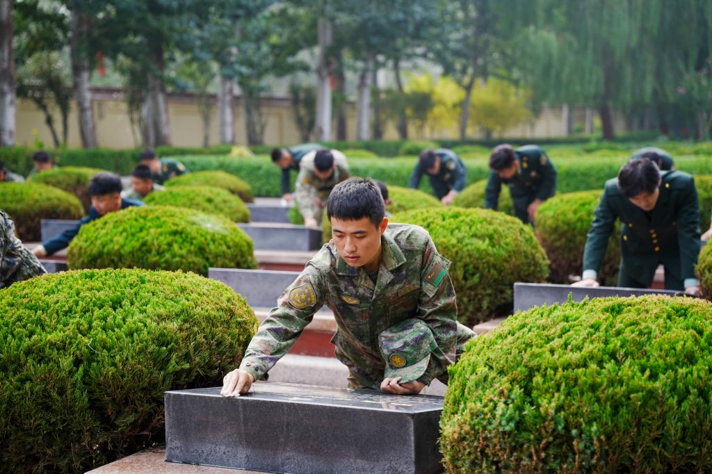 静默祭扫寄哀思。在无名烈士墓区,一束白菊三鞠躬,一捧黄土万般情,退役大学生手持素白菊花,缓步踏上台阶,轻抚冰冷石碑,以军礼与静默对话历史。他们俯身清理墓区杂草,跪地擦拭斑驳碑文,让被岁月尘封的英雄事迹在阳光中重新闪耀。