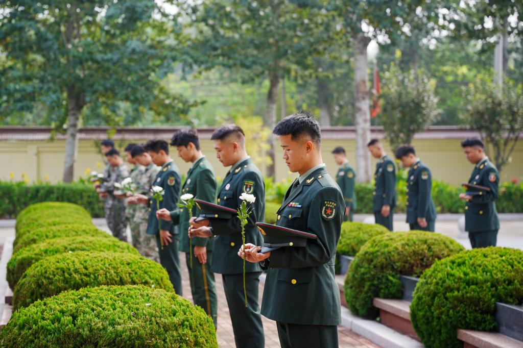 铮铮誓言表决心。全体退役大学生面向纪念碑庄严宣誓:承先辈之志,护家国无恙。铿锵誓言在陵园上空久久回荡,坚定了新时代青年学子传承红色基因、勇担时代重任的信念。