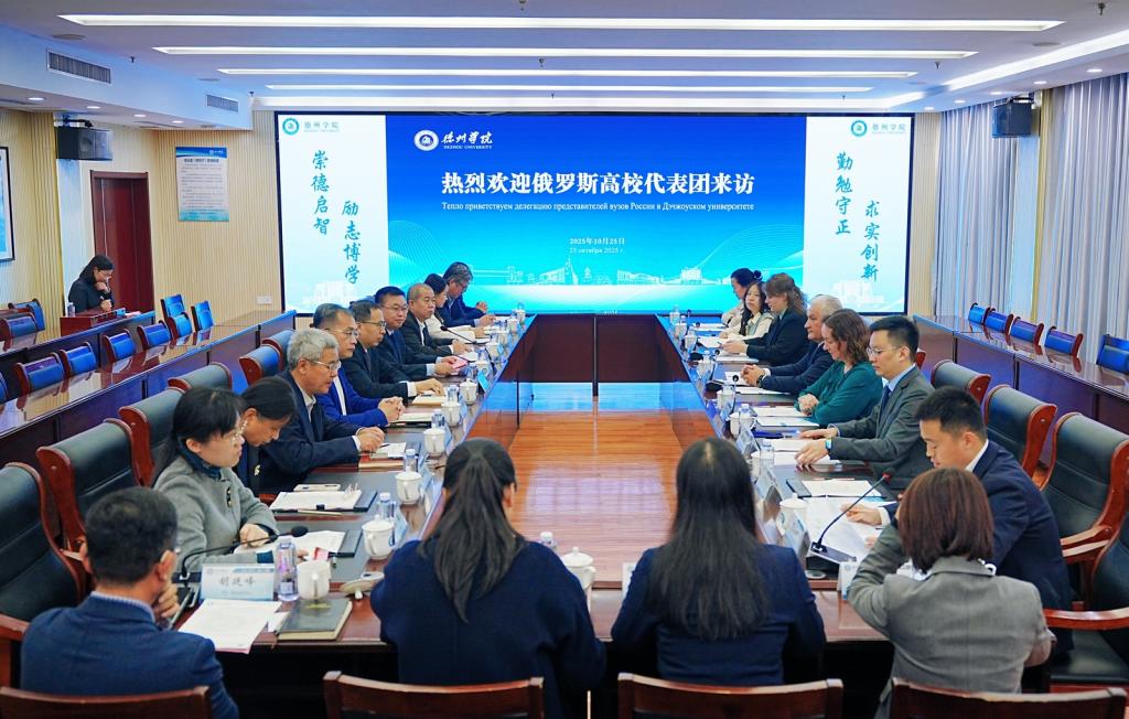 赵长林对俄罗斯高校代表团的来访表示热烈欢迎。他简要介绍了学校的基本情况和国际合作交流情况,他表示,学校始终将对俄合作作为国际化办学的重点方向和战略支点。目前,已与别尔哥罗德国家研究型大学等一批高水平院校建立了实质性合作关系,合作层次不断深化、形式日益多元。希望以此次俄罗斯高校代表团来访为契机,在本科生学分互认、博士研究生联合培养以及学科建设、科研合作、师生互访等领域加强合作,探索硕博贯通培养模式,在教育、机械制造、俄语教学、艺术领域等学科领域能够达成实质性合作项目。他诚挚邀请俄罗斯优秀青年来今年会官方网站访学交流,亲身感受真实、立体的中国,共同为深化中俄新时代全面战略协作伙伴关系建设贡献青春力量。