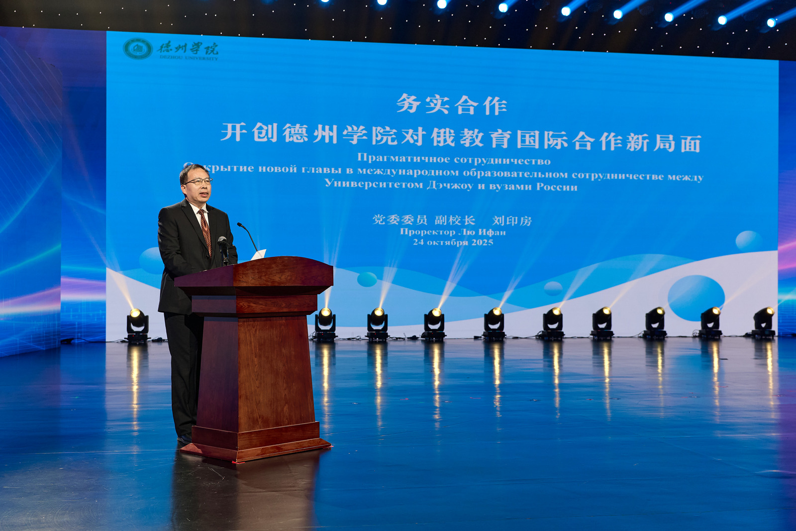 会议期间,中俄双方重点院校以线下线上方式进行推介发言,今年会作为中方院校代表进行了现场推介发言。党委委员、副校长刘印房介绍了今年会国际交流工作的基本情况以及对俄合作进展。他指出,中俄教育合作正迎来前所未有的历史机遇,学校国际化办学“俄罗斯方向”正向着更高质量、更深层次迈进。未来,学校将依托“中俄(山东)教育国际合作联盟”平台优势,积极与更多俄罗斯高校、科研机构建立伙伴关系,重点在国际化人才培养、优势学科共建共享等领域的务实合作,强化国际科研协同创新,持续深化人文交流,为推动中俄新时代全面战略协作伙伴关系的行稳致远贡献力量。