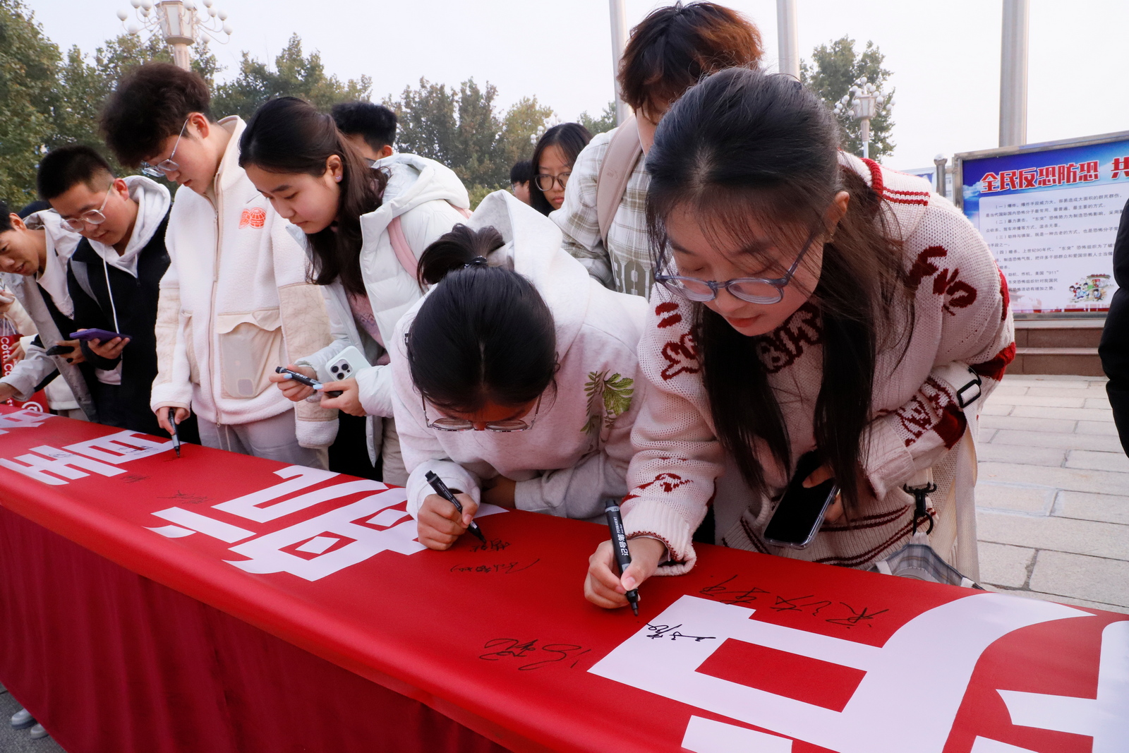本次活动包括主题报告和现场宣传两部分。德城公安分局张媛警官作了《认清邪教危害,守护青春梦想》专题报告,主会场与各分会场以线上线下的方式同步进行。报告会后,师生参观了反邪教、反恐及民族宗教政策宣传展板,并参与签名承诺活动。