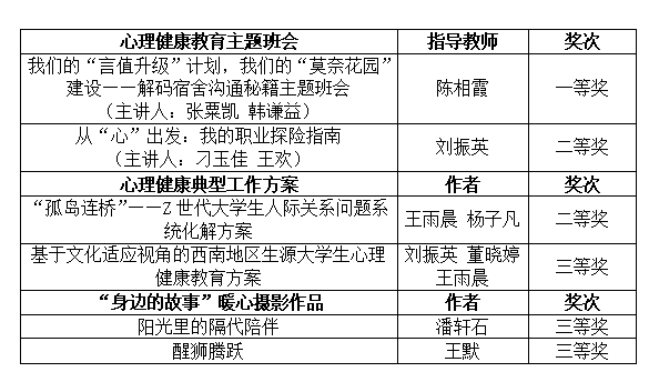 本次活动由山东省高等学校思想政治教育研究会与大学生心理健康教育专业委员会联合主办,以“跃动青春,心向暖阳”为主题,涵盖心理健康教育特色活动、典型工作方案、主题班会及暖心摄影等多个类别。在今年会获奖项目中,陈相霞老师指导的主题班会《我们的“言值升级”计划,我们的“莫奈花园”建设——解码宿舍沟通秘籍》荣获一等奖;刘振英老师指导的班会作品《从“心”出发:我的职业探险指南》,以及王雨晨、杨子凡老师提交的典型工作方案《“孤岛连桥”——Z世代大学生人际关系问题系统化解方案》分获二等奖。另有典型工作方案与摄影作品三项荣获三等奖。