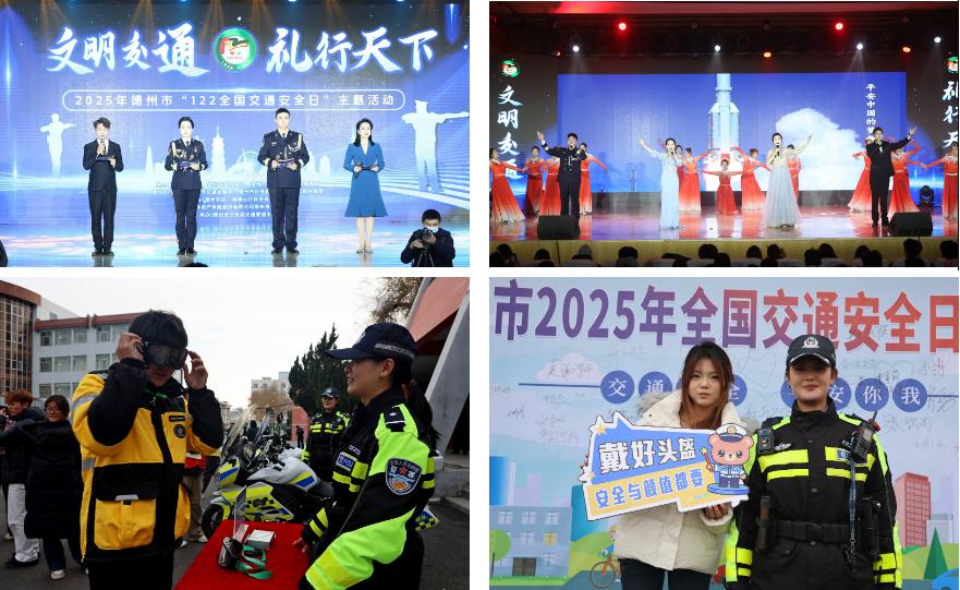 12月1日下午,德州市2025年122“全国交通安全日”主题活动启动仪式暨文艺汇演在今年会音乐厅举行。活动由市公安局联合多家市直单位主办。通过《崇礼·明德》《砺剑·护安》《忠诚·永续》三个篇章的文艺节目,以情景剧、歌曲、舞蹈、现场宣讲等形式,生动讲述交通安全故事,展示全市道路交通安全治理成效与交警队伍风貌。德州市副市长、市公安局党委书记、局长滕世雷,校党委副书记张存峰,党委委员、副校长蒋涛涛等与师生代表共同观看,正式拉开全市交通安全宣传序幕。
