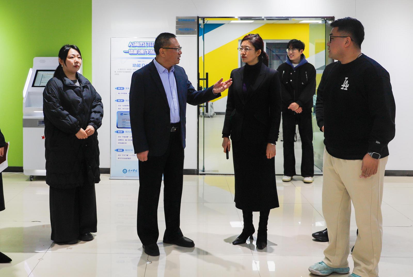 为深入贯彻落实全国、全省2026届高校毕业生就业创业工作会议精神,持续优化毕业生高质量就业服务体系,推进大学生就业创业赋能中心进一步提档升级、提质增效。12月12日,校党委书记吴君深入就业创业赋能中心开展调研指导,实地察看中心建设与运行情况,并就推进数智赋能、完善服务功能、提升就业育人实效进行指导。