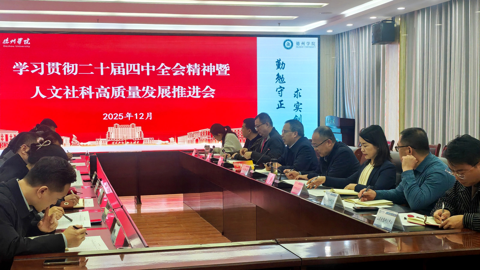 12月11日,学校在厚德楼二楼报告厅召开学习贯彻党的二十届四中全会精神暨人文社科高质量发展推进会。党委委员、副校长刘印房出席会议。