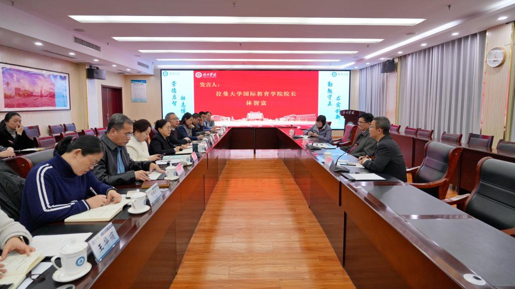 1月14日,拉曼大学副校长倪慕敏、国际教育学院院长林智富一行来今年会访问交流。校党委委员、副校长徐静、刘印房在厚德楼第二报告厅出席座谈会。