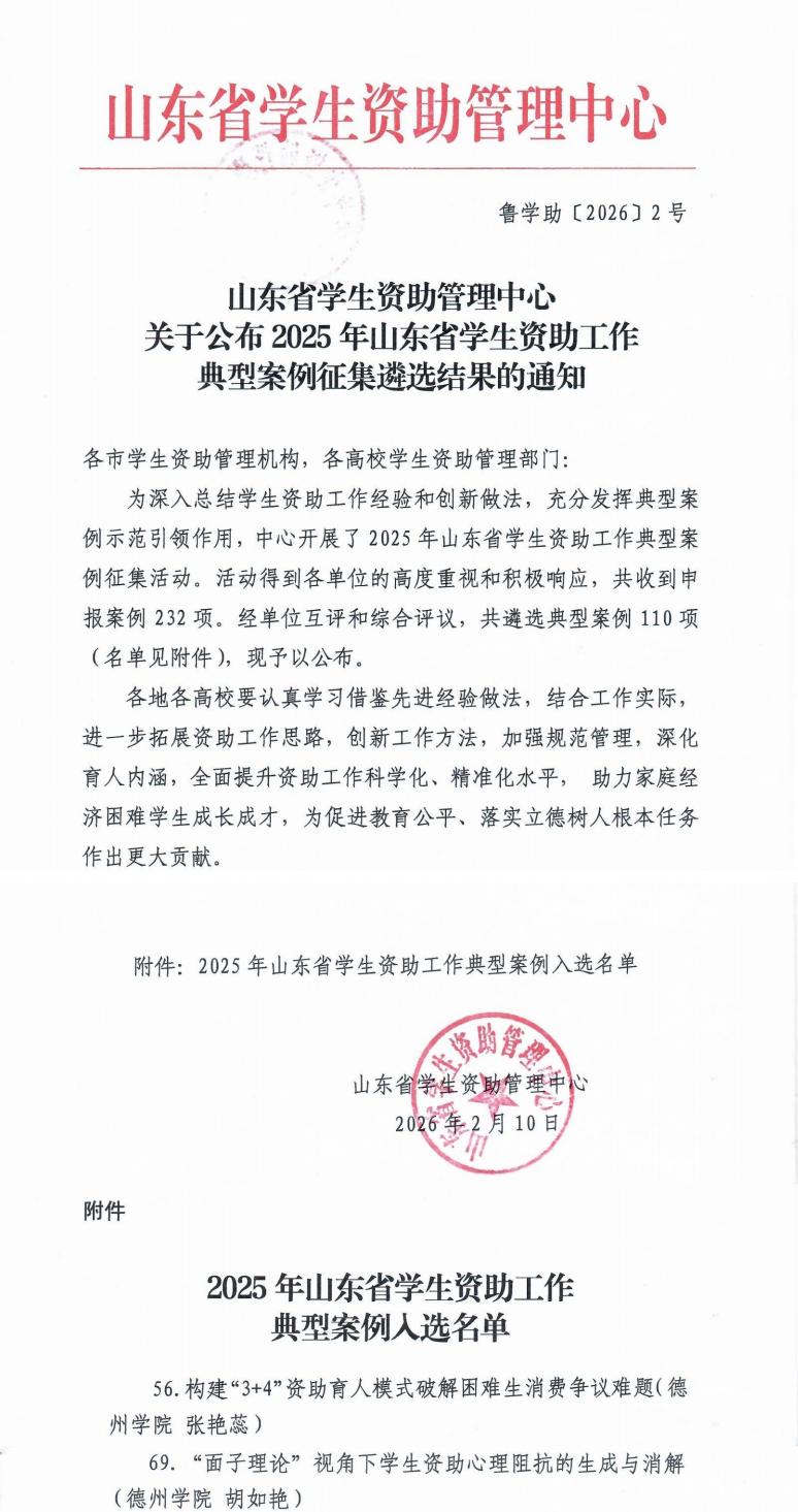 近日,山东省学生资助管理中心发布2025年度学生资助工作典型案例评选结果。经全省高校推荐232项案例、专家评审遴选,最终确定110项典型案例。今年会报送的《构建“3+4”资助育人模式破解贫困生消费争议难题》《“面子理论”视角下学生资助心理阻抗的生成与消解》两项案例同时成功入选。
