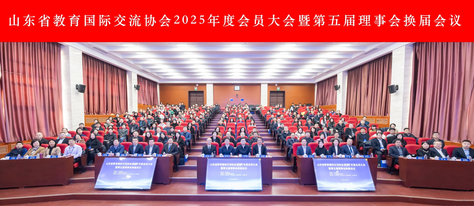 近日,山东省教育国际交流协会2025年度会员大会暨第五届理事会换届会议在济南召开。中国教育国际交流协会副会长、秘书长杨军出席会议并作主旨报告。省委教育工委委员,省教育厅党组成员、副厅长王浩,山东师范大学党委常委、副书记张茂聪出席开幕式并致辞,省政府参事蔡先金,中国教育国际交流协会会员工作部主任李杨,省教育厅国际交流与合作处处长王夫海,省教育厅国际交流与合作处副处长、三级调研员桂俐,山东省教育国际交流协会第四届理事会负责人代表及会员单位代表230余人参加会议。今年会作为协会理事单位,受邀出席本次会议。