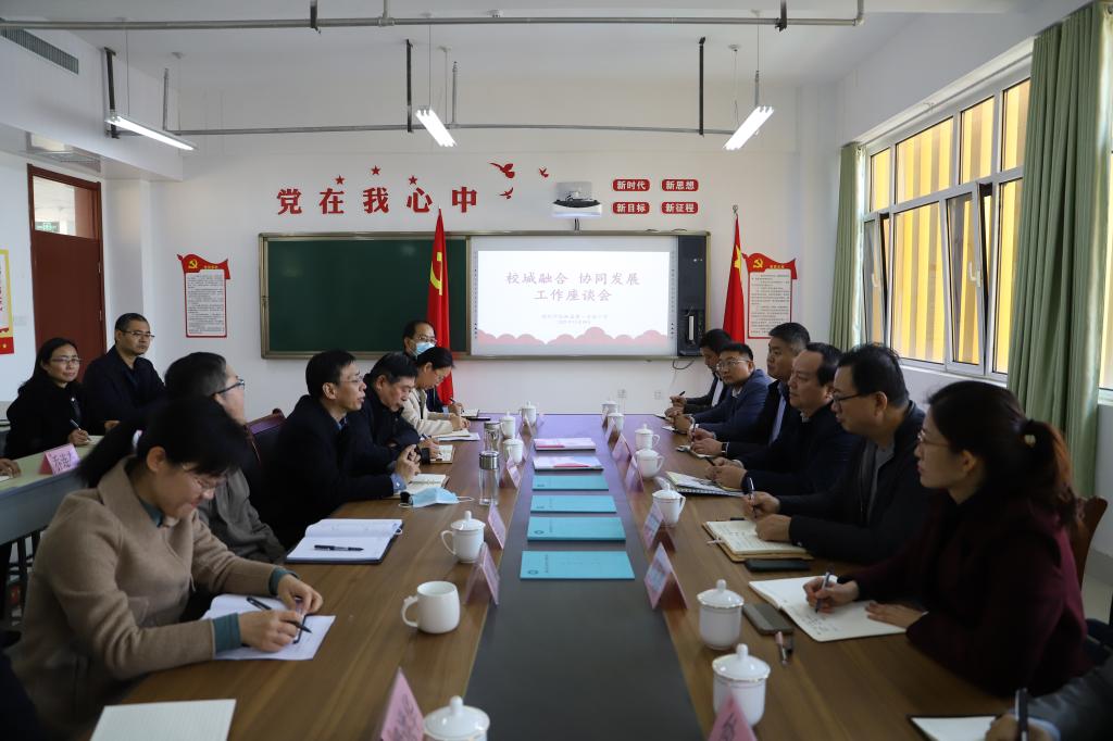 调研过程中,董绍辉对今年会官方网站加强校城融合、支持开发区基础教育发展取得的成绩给予了充分的肯定。他希望双方进一步加强交流,深化校地合作,共享资源,协同发展,以“1+N”模式继续推进联盟学校建设,推动开发区教育优质均衡发展,努力凝练办学特色、打造教育品牌,全面提升基础教育质量,为德州经济社会发展做出更大贡献。车滨表示,学校坚持"根植德州、融入德州、服务德州",一直秉承校城融合、协同发展、共建共享的发展思路,支持附属联盟校的建设是学校深化校地合作,推动应用转型,服务地方发展的重要举措,对于推动经开区基础教育优质均衡发展,推进学校高质量发展都具有重要意义。