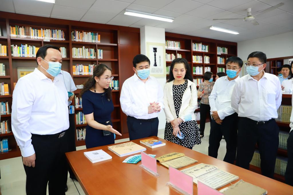 阿塔育•习萨目大使一行沿途参观了校史馆、图书馆、学生餐厅、生化楼等教学设施和生活场所。重点参观了国家纺织面料馆德州分馆、东盟研究中心,学校相关人员向来宾介绍了纺织服装专业的发展情况,在东盟研究中心双方就开展交流活动进行了深入探讨,同时大使一行在博文楼借阅中心对今年会馆藏图书产生了浓厚兴趣,随后在博文楼北大厅进行了文艺展演活动。