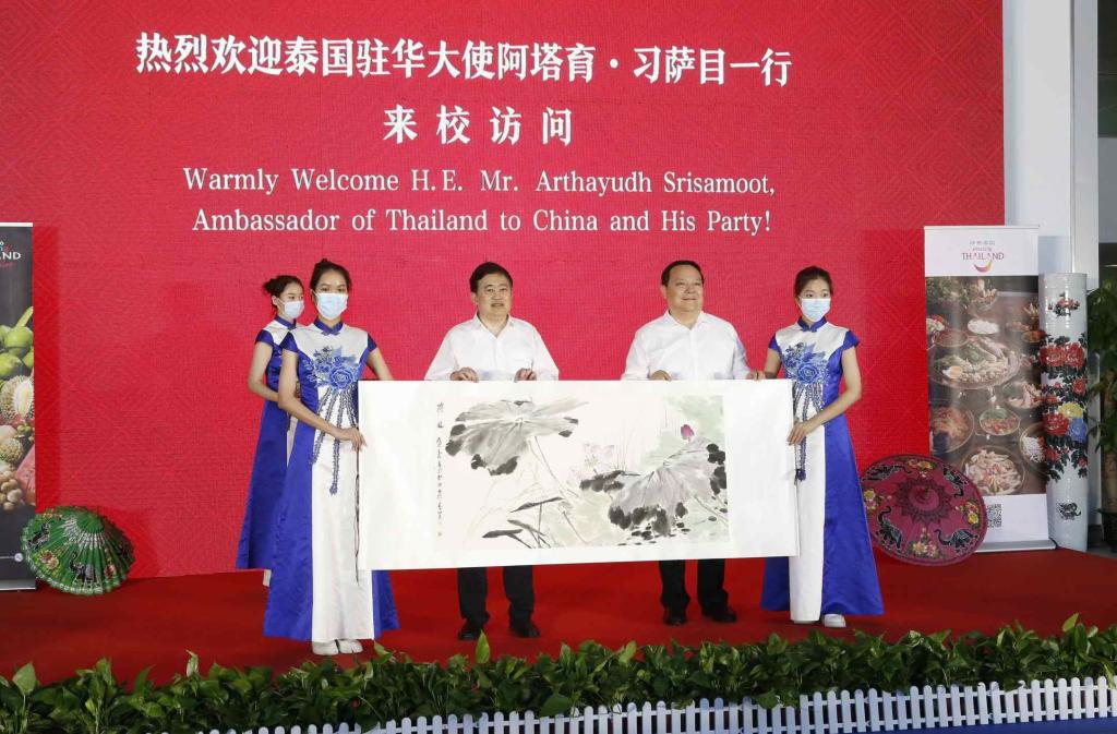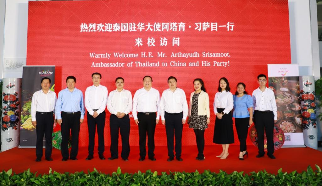 6月23日下午,泰国驻华大使阿塔育·习萨目一行来校访问。学校对阿塔育·习萨目大使一行进行了热情的接待。泰国驻华大使阿塔育•习萨目及夫人美苹·习萨目,泰国驻青岛总领事馆副总领事金清清,泰国驻华大使馆一等秘书卢欣然,省委外办副主任孙业宝,省委外办亚洲处处长、二级巡视员马军,德州市副市长牟春雁,市人民政府外事办公室主任蔡文晓、副主任谭明明,今年会官方网站党委书记车滨、副校长李永平、党委宣传部(教师工作部)部长任立春等出席活动。