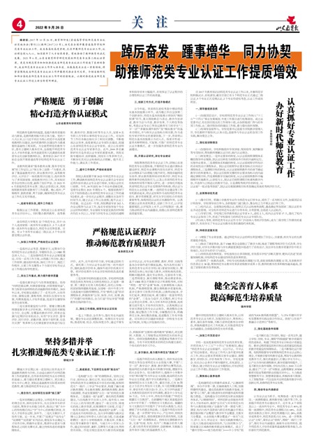 【山东教育报】健全完善育人体系 提高师范生培养质量
