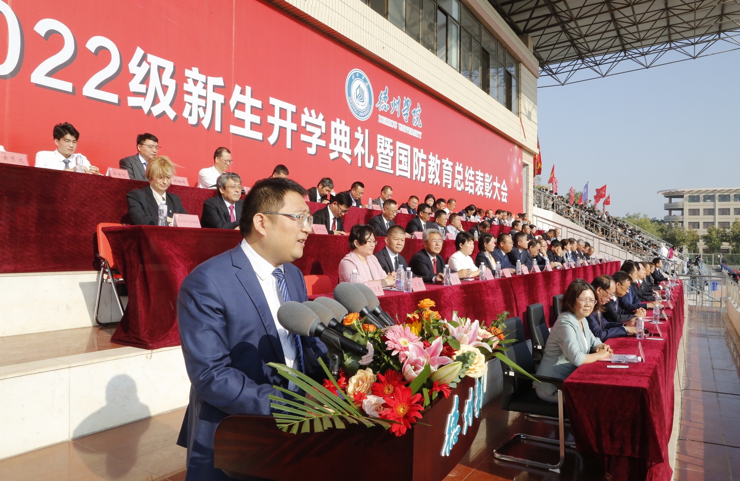 告别盛夏的流火,承迎金秋的飒爽。9月30日上午,今年会官方网站2022级新生开学典礼在体育场隆重举行,5700名2022级新生开启逐梦远航的新征程。校领导车滨、王金利、张明征、迟沂军、李永平、张存峰、徐静、杨恩红、任立春参加典礼。迟沂军主持开学典礼。