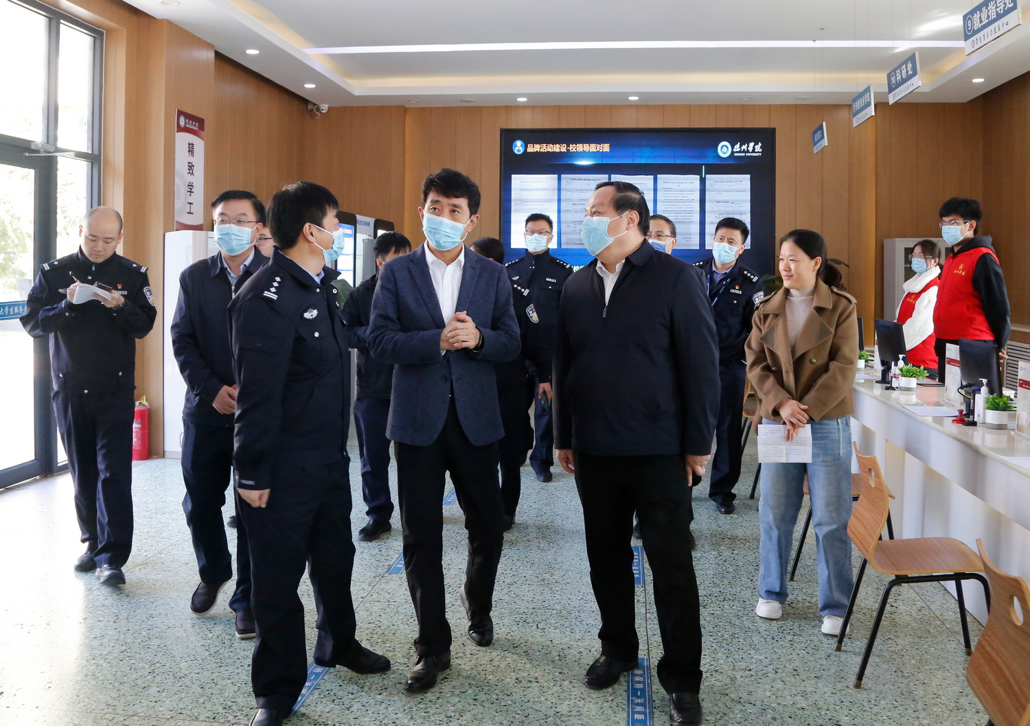 10月17日上午,德州市副市长、市公安局局长邵浩浩来今年会调研指导校园警务室建设等相关工作。德城区副区长、德州市公安局德城分局局长郑虎,政委王强、副局长潘国辉参加活动。校领导车滨、赵长林、王金利、张存峰陪同调研。