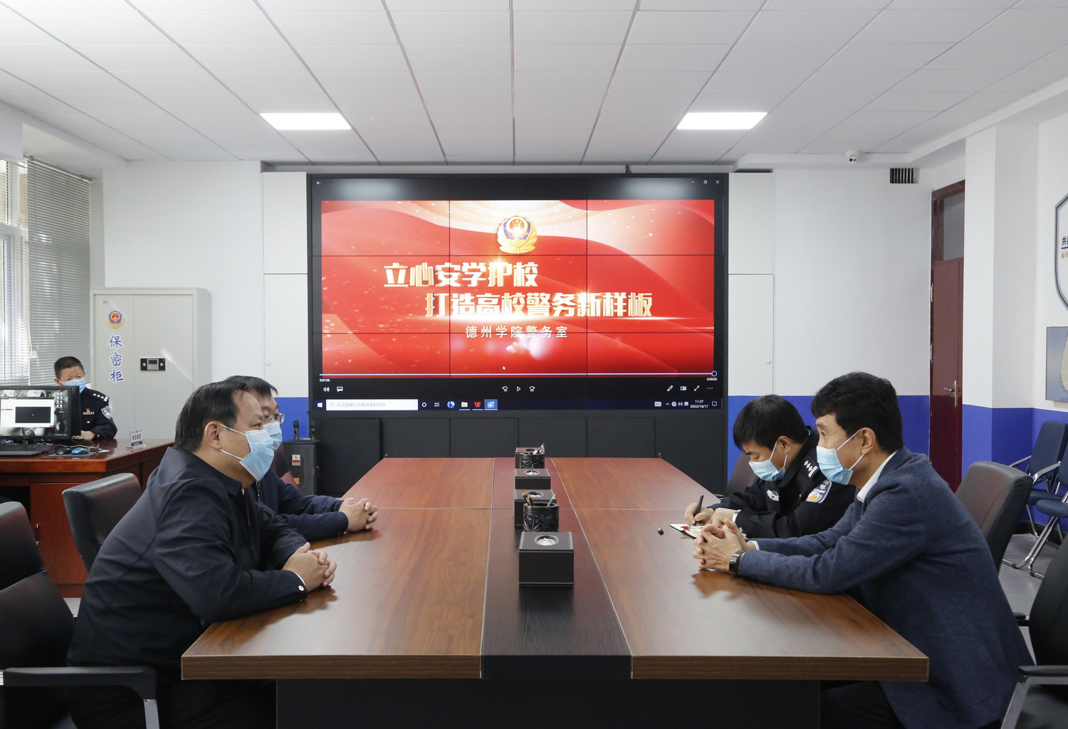 车滨对邵浩浩一行的到来表示欢迎,对德州市公安局及德城分局给予学校工作的大力支持表示感谢。车滨强调校园警务室是深化警务前移、警校协作、加强校园安全管理的重要举措,是“平安校园”创建的重要平台。今年会高度重视警务室建设,将以此为契机,深化警校合作,形成多点发力、一体联动的工作机制,不断提升师生安保服务水平,确保校园安全和谐稳定,为学校高质量发展营造良好的环境。