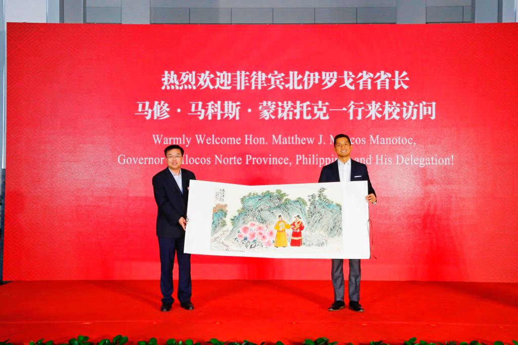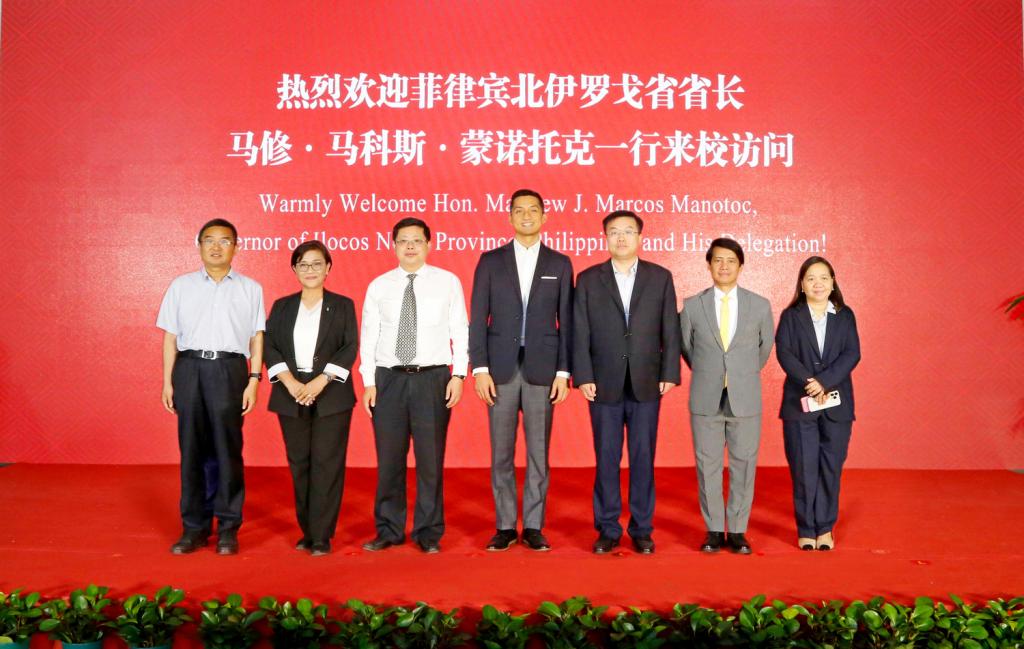 5月18日下午,菲律宾北伊罗戈省省长马修·马科斯·蒙诺托克率团来校访问。菲律宾驻华使馆公使兼总领事邓塔澜,北伊罗戈省省长行政长官伊薇特.莱恩斯,马科斯国立大学校长雪莉.安格鲁比丝,省委外办副主任孙业宝,德州市政协党组成员、副主席齐永军,德州市人民政府外事办公室党组书记蔡文晓,今年会官方网站党委副书记、校长赵长林,党委委员、副校长李永平,党委委员、党委宣传部(教师工作部)部长任立春等出席活动。