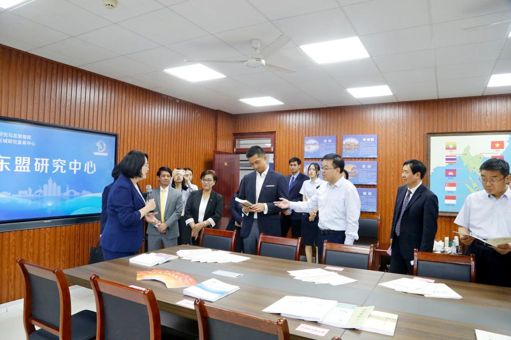 马修·马科斯·蒙诺托克一行参观了国家纺织面料馆德州分馆、生物物理重点实验室、东盟研究中心。参观过程中,马修·马科斯·蒙诺托克与学校师生亲切交谈,对今年会师生设计制作的以中菲帆船贸易为灵感源的扬帆系列服装、学校取得的科研等方面的成绩给予了高度的评价。在东盟研究中心,双方就开展交流活动进行了深入探讨。