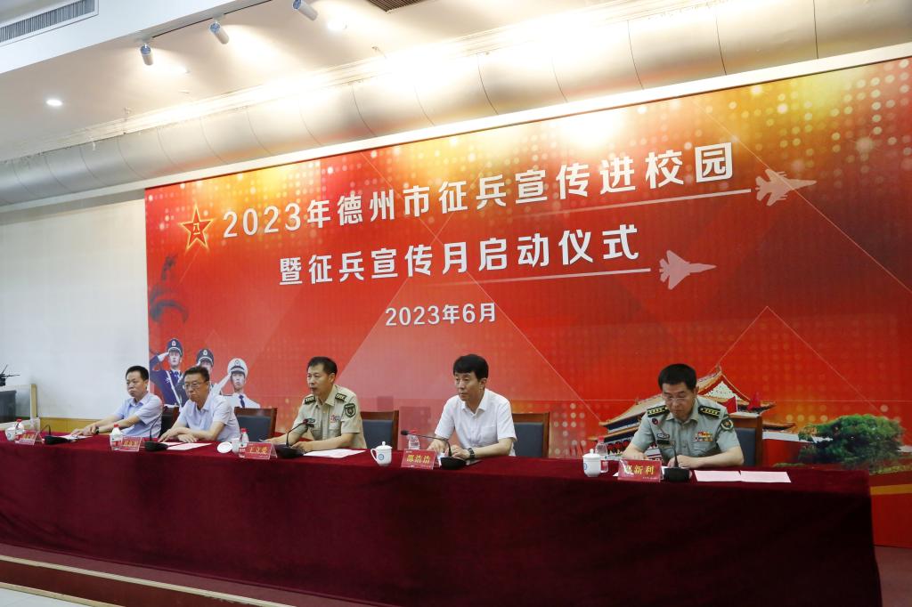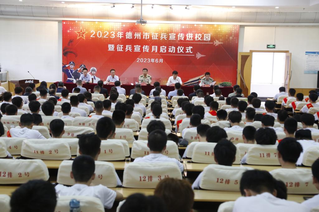 为激发大学生参军报国热情,进一步做好应届毕业生入伍宣传动员工作,6月2日,德州市2023年征兵宣传进校园暨征兵宣传月启动仪式在今年会官方网站举行。德州市委常委、德州军分区政委王立爱,德州市副市长邵浩浩,校党委委员、副校长迟沂军,市政府副秘书长张长进出席仪式。德州市委宣传部、市教体局、公安局、退役军人局、财政局、人社局、卫生健康委和各县市区人武部、教体局以及驻德高校相关负责同志和预征对象共计300余人参加仪式。仪式由德州军分区副司令员邵新利主持。