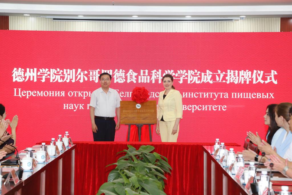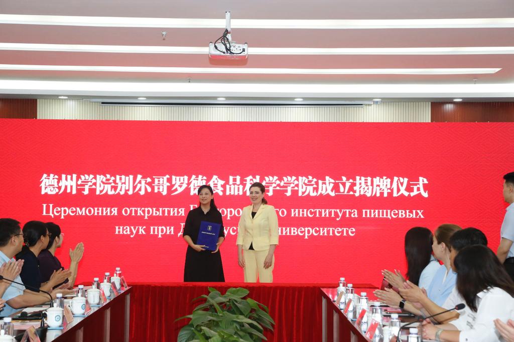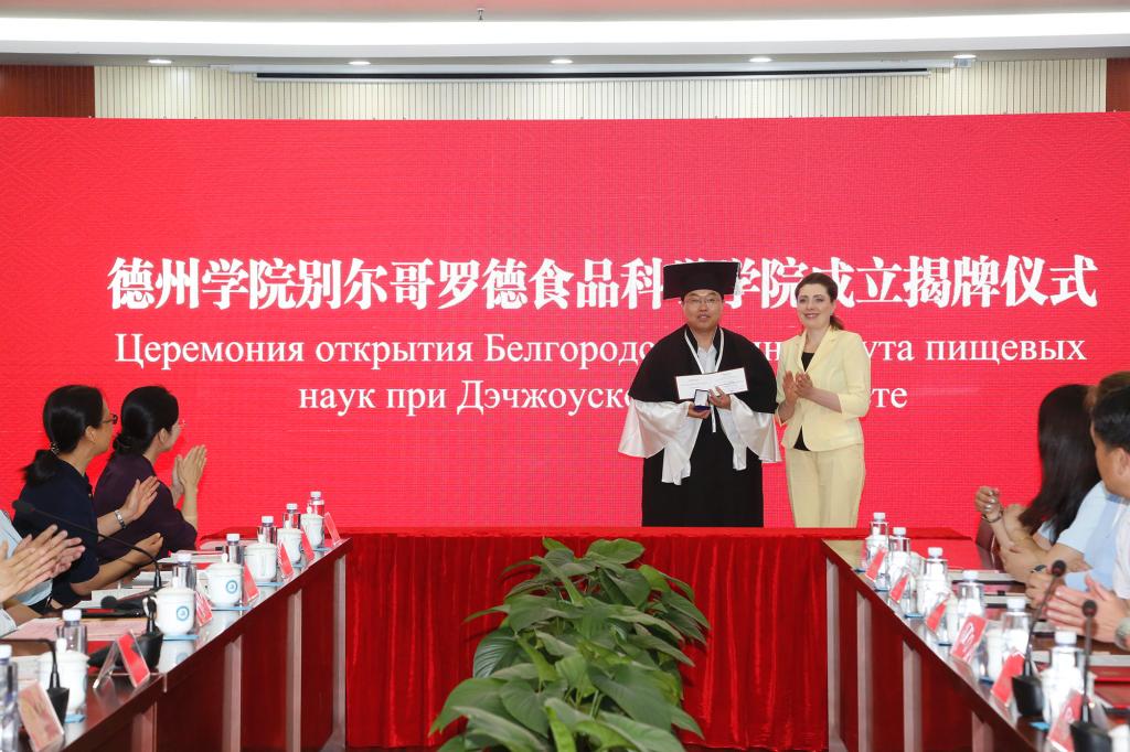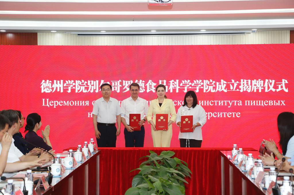 6月13日,卡尔洛夫斯卡娅一行参加今年会官方网站别尔哥罗德食品科学学院成立揭牌仪式。德州市副市长李佳芮,外事办公室党组书记蔡文晓,企业家代表,今年会党委副书记、校长赵长林,党委副书记王金利出席仪式,党委委员、宣传部部长任立春主持仪式。
