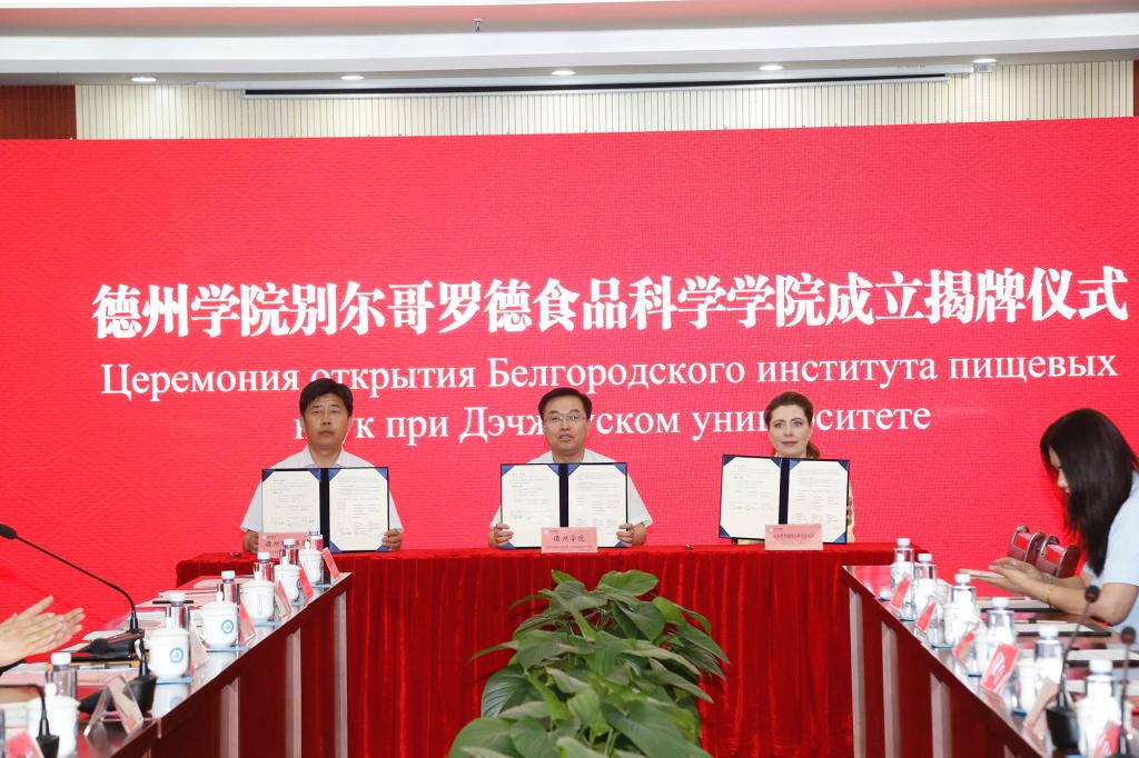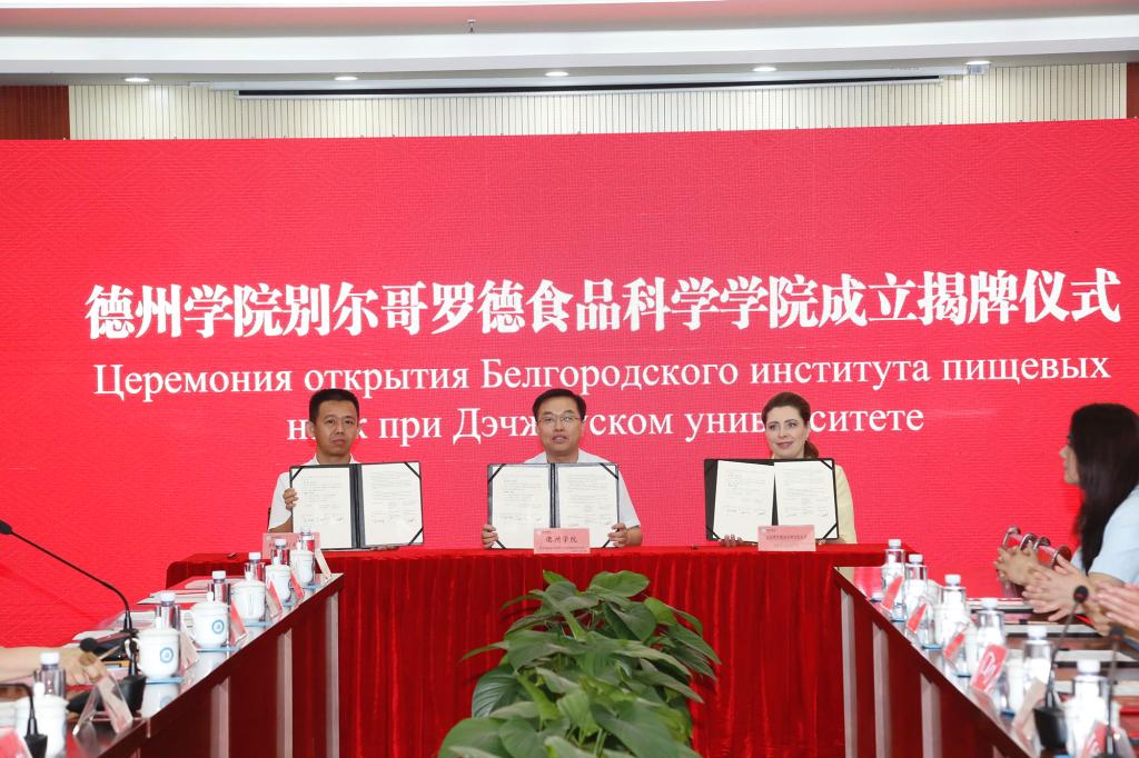 14日,卡尔洛夫斯卡娅一行参观了别尔哥罗德食品科学学院,参加别尔哥罗德食品科学学院学生俄语展示活动。在与双方教师座谈后,卡尔洛夫斯卡娅一行到平原县实地调研企业,签署了今年会官方网站别尔哥罗德食品科学学院、别尔哥罗德国家研究型大学药学、化学和生物学院及有关企业三方合作框架协议,并参加了平原县高层次专家人才座谈交流会。