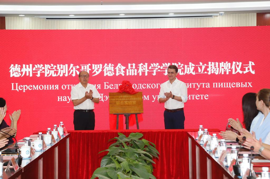赵长林、卡尔洛夫斯卡娅共同为别尔哥罗德食品科学学院揭牌;王金利、库赫米斯蒂共同为(中俄)农业食品科学与技术国际合作联合实验室揭牌。