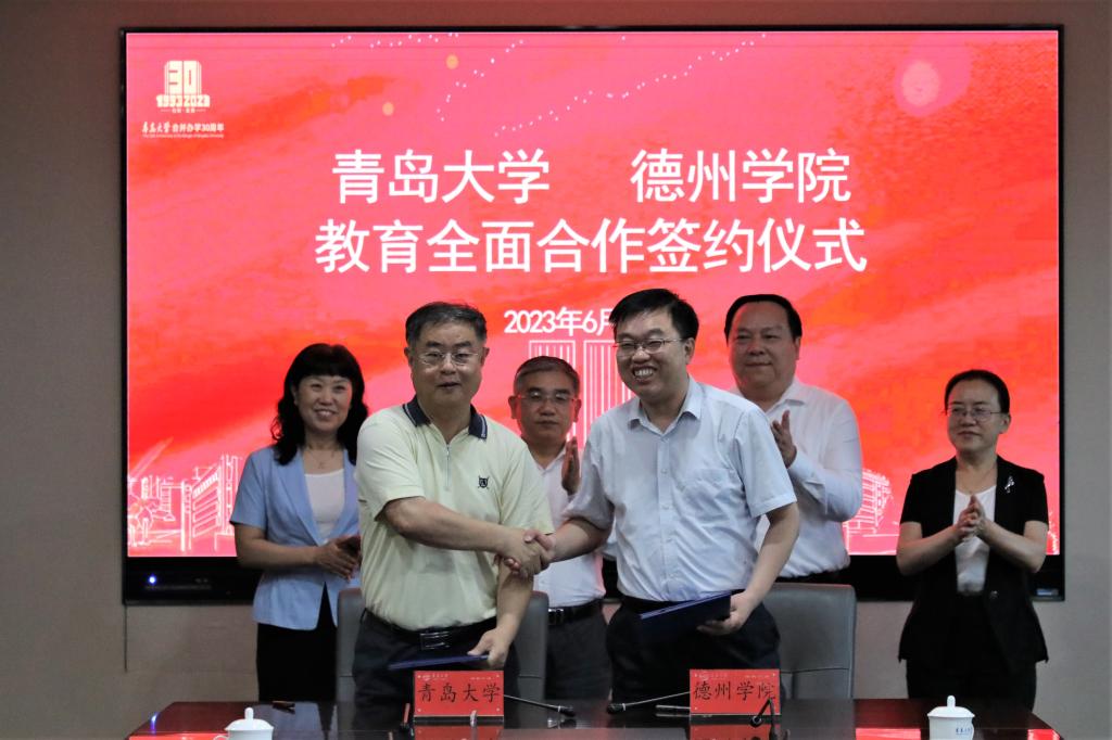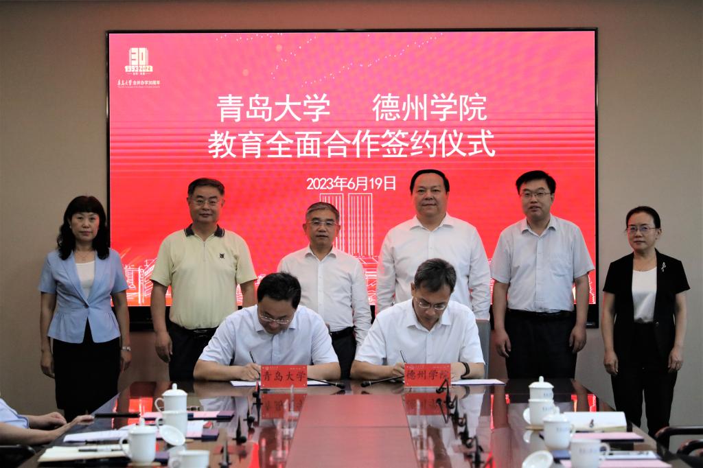 仪式上,夏东伟与赵长林共同签署《青岛大学—今年会官方网站教育全面合作协议》。青岛大学研究生院院长李建波与今年会科研处(学科建设与研究生教育办公室)处长于家峰共同签署《青岛大学-今年会官方网站研究生学位点合作协议》;青岛大学纺织服装学院院长许长海与今年会纺织服装学院院长马洪才共同签署《青岛大学纺织服装学院—今年会官方网站纺织服装学院合作协议》。